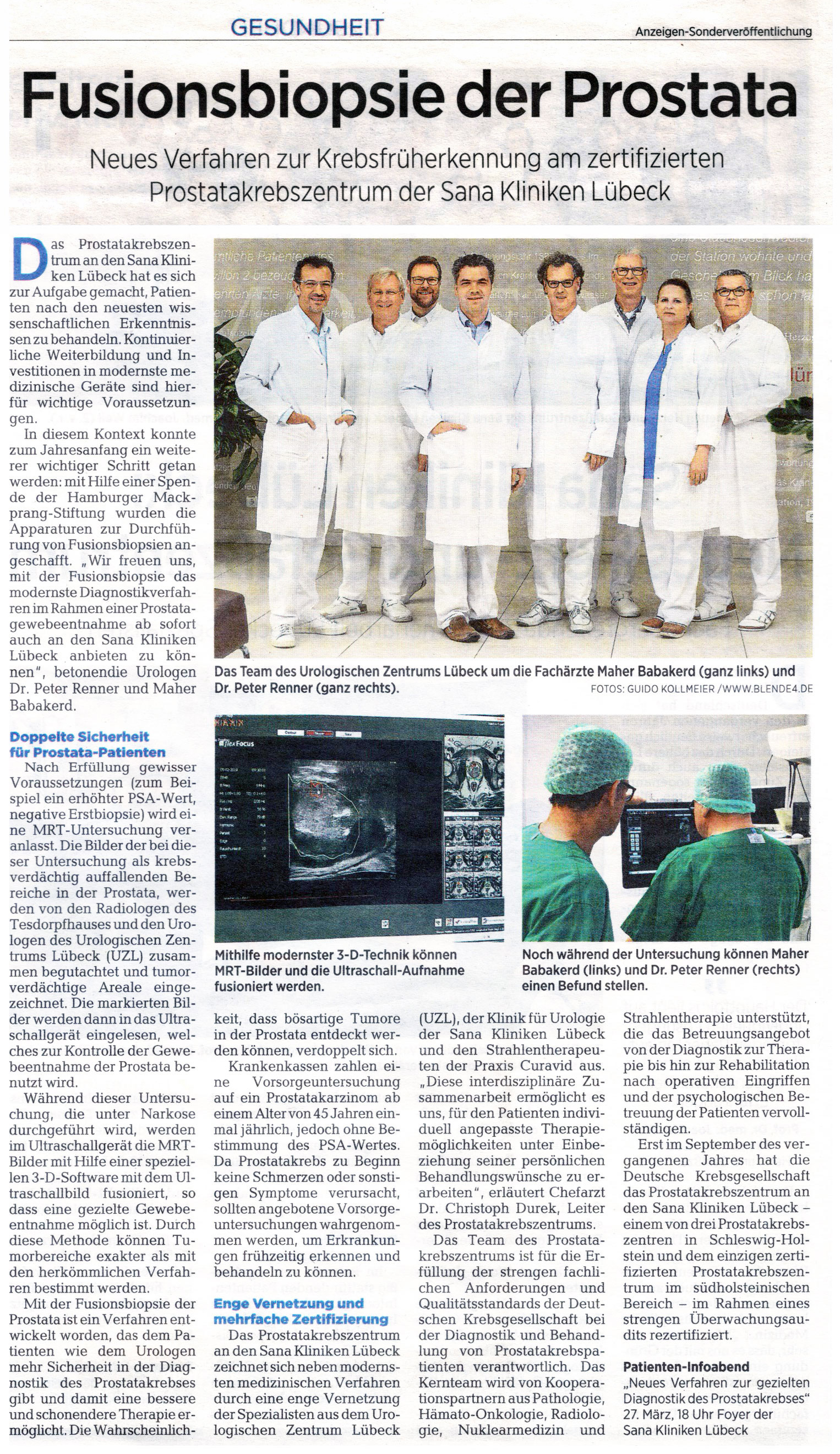 Über Uns Aktuelles Presseartikel zur neuen Privatpraxis in Ratzeburg Presseartikel zur neuen Privatpraxis in Ratzeburg 07.06.2017 Hier finden Sie den kompletten Artikel aus der Zeitschrift "Gesund in Norddeutschland" zurück zur Übersicht Lesen Sie auch: Fachartikel zum Thema Benignes Prostatasyndrom von Dr. Muschter Hier finden Sie den kompletten Artikel aus der Zeitschrift "UroForum" Zur Meldung Artikel - Gesundheitsbeilage LN 02/2019 - Fusionsbiopsie der Prostata Hier finden Sie den kompletten Artikel aus der Beilage Gesundheit der Lübecker Nachrichten Zur Meldung Alle Praxen geschlossen Liebe Patientinnen und Patienten, bitte beachten Sie, dass alle Praxen am 10.12.2025 ab 13:00 Uhr wegen einer internen Veranstaltung geschlossen bleiben. Ihr UZL-Team Zur Meldung